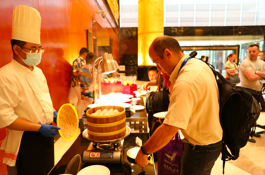在餐饮方面,各星级酒店也费尽心思做好安排。林镇海说:“白天鹅宾馆考虑到广交会国际客户多,在流浮阁咖啡厅和游船自助早餐中,有针对性和偏向性地将西式餐点比例上调至60%—75%,满足国际客户的普遍习惯和整体需求。”中国大酒店在广交会期间推出一系列特别定制餐饮,比如地中海美食自助餐等。东方宾馆根据预订的采购商团队来源地,特别准备了韩国、南美、中东等地区特色美食。白云宾馆则借机推广中国餐饮的“地大物博”, 在大堂推出“金陵美食节”名小吃,供国内外客人一品中国风味。