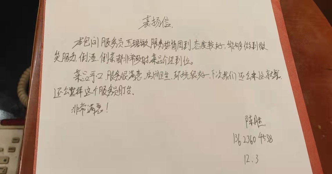 宾客表扬信 晋祠宾馆 供图