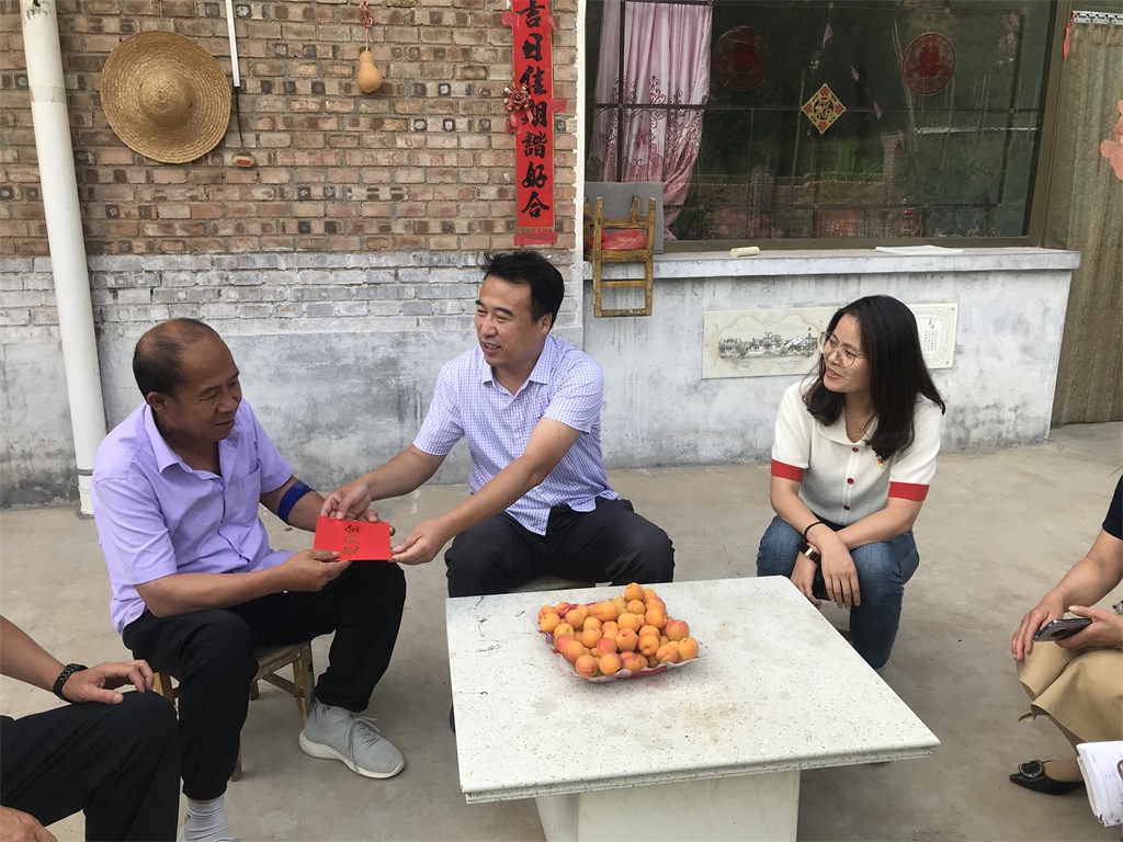 黄庆山(中)为群众送去慰问金。娄烦县委宣传部 供图