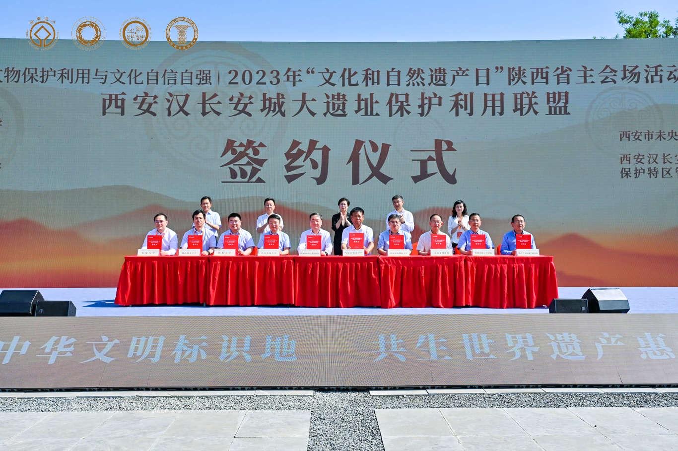 为深入探索汉长安城遗址保护利用新路径,汉长安城特区管委会与陕西省高等院校、科研院所携手成立“大遗址保护利用联盟”,并在现场举办了签约仪式,旨在围绕文化传承、科学研究、人才培养、社会服务等建立长期、深入的战略合作关系。活动现场,还举办了第三届“最美陕西文物安全守护人”表彰仪式、“陕西省考古地质研究中心”授牌仪式,公布了沿黄文化主题游径、中共中央转战陕北主题游径和大汉文化主题游径等陕西省首批文物主题游径。