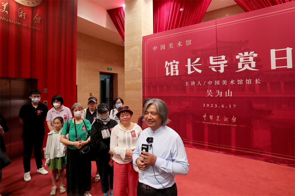 6月17日,中国美术馆举办“馆长导赏日”公共教育活动,中国美术馆馆长吴为山为观众导赏“美在新时代——中国美术馆建馆60周年系列展览”。