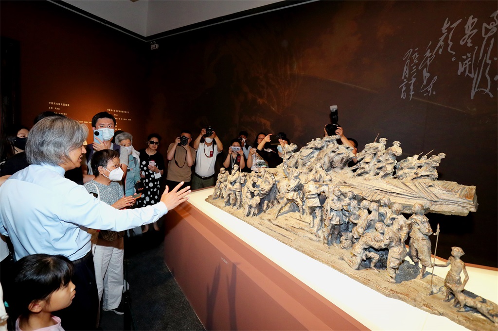 从《十送红军》《血战湘江》一直讲到《激战腊子口》《会宁会师》,导览接近尾声,吴为山动情地说:“长征是人类为追求真理和光明而不懈努力的伟大史诗,长征迸发出的激荡人心的强大力量跨越时空,跨越民族。”