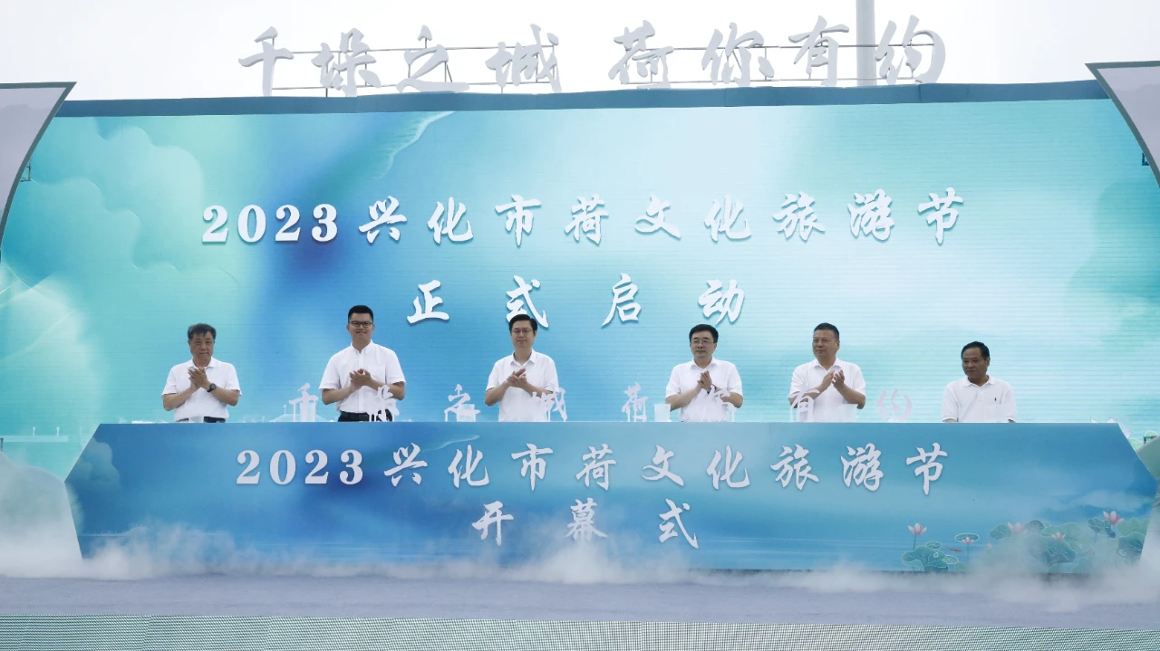 6月20日,由江苏兴化市委、市政府主办的2023兴化市荷文化旅游节在兴化万亩荷塘景区开幕。活动将延续至8月10日。其间,兴化市将推出里下河龙舟邀请赛暨兴化市第十五届龙舟大赛、首届乌巾荡啤酒龙虾节、里下河音乐节等一系列活动。