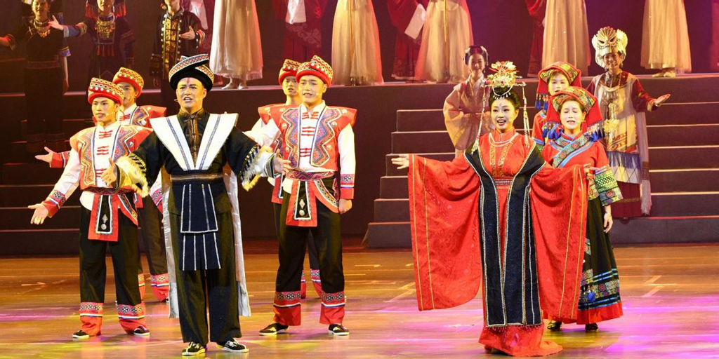 《玉壶公主》这部音乐剧深入挖掘了广西民间丰富的文化宝藏,灵感源自脍炙人口的“天琴唱书”及悠久流传的民间故事。作品以汉、壮、彝族等民族的团结与奋斗为主线,通过生动的舞台演绎,再现了各民族携手抵御外敌、共同建设美好家园的壮丽篇章。该剧不仅是一部歌颂民族团结与融合的力作,更是弘扬中华优秀传统文化、展现广西原生态文化及崇左独特风土人情的艺术瑰宝。