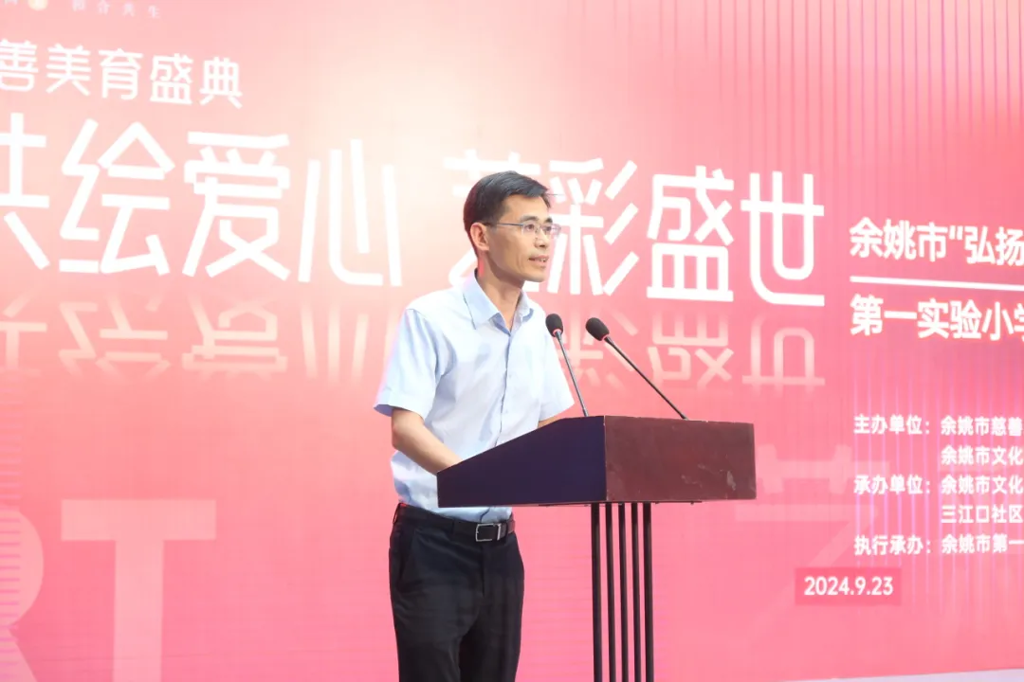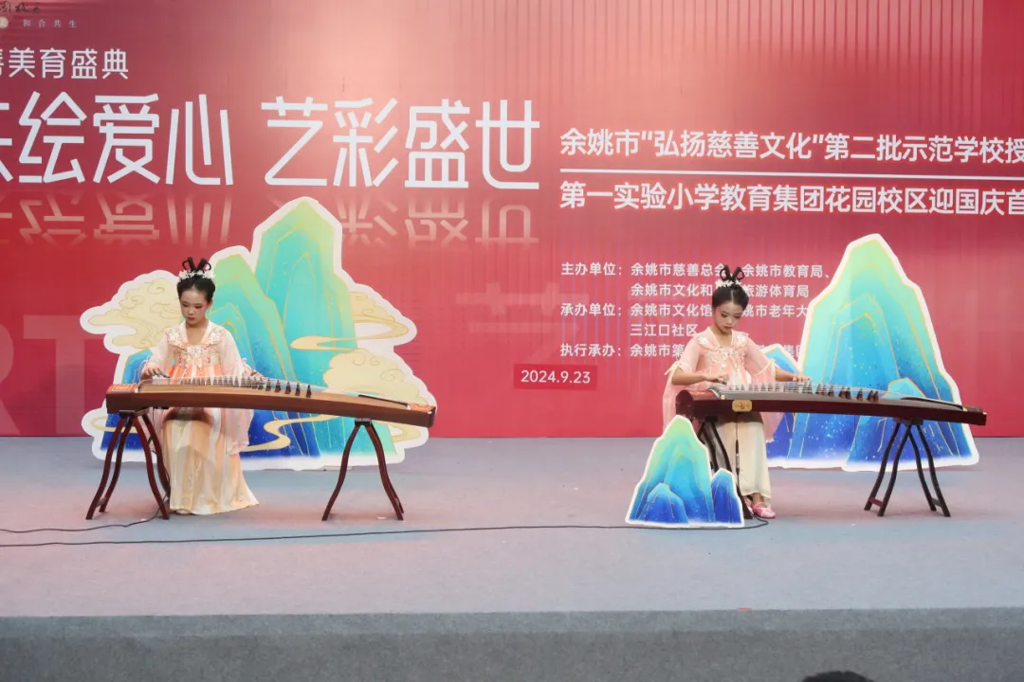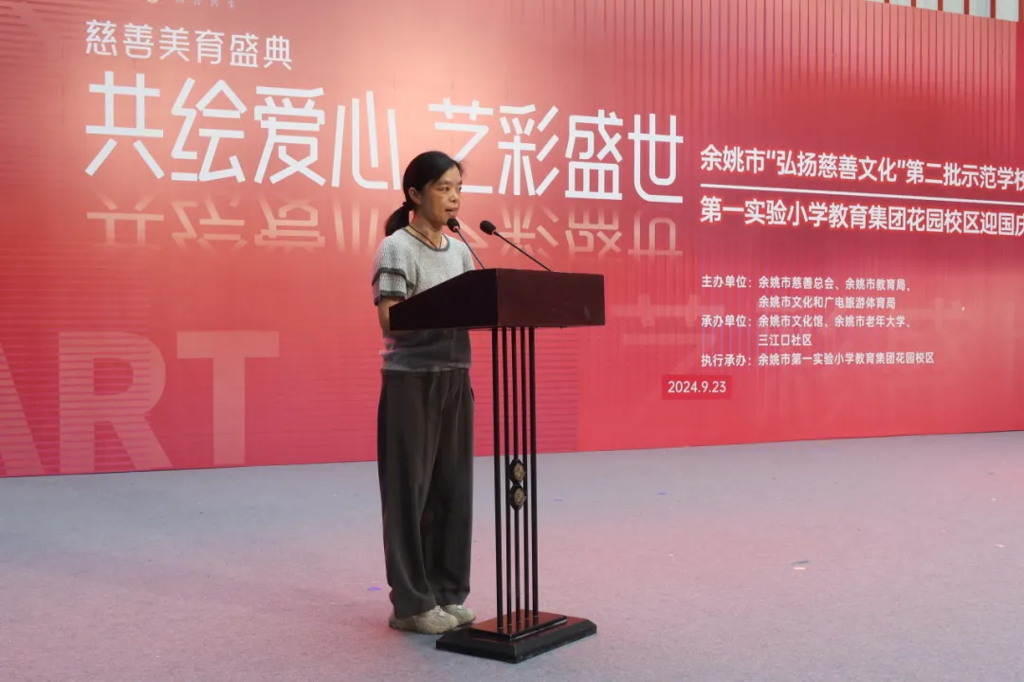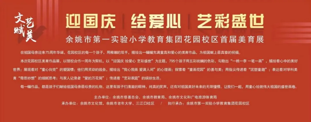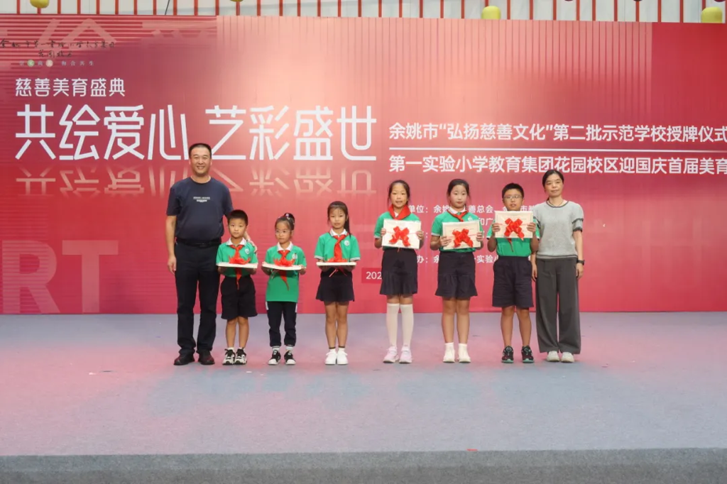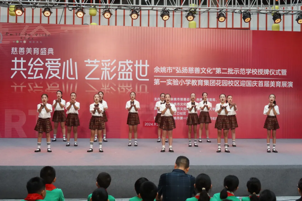9月23日上午,余姚市“弘扬慈善文化”第二批示范学校授牌仪式暨第一实验小学教育集团花园校区迎国庆首届美育展演活动在余姚市文化馆4号楼一楼中庭举行了开展仪式。