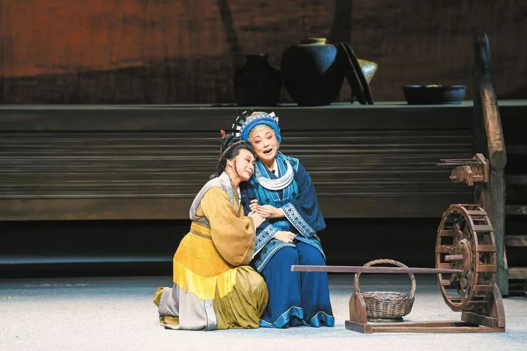 拜雅峒主的语言睿智大气。在处理新弓车问题时,她唱道:“知恩图报有福报,行善积德百慧来。”这句话尽显她的远见卓识以及对百姓的关爱,为剧中的道德抉择和价值取向树立了标杆。在最后与黄道婆的离别时,她的叮嘱“衣被百姓自籽始,望我儿莫忘广积棉”,在这份情感的深处,我们看到了母爱的伟大与坚韧,对未来的美好憧憬,天涯织女的生命叠影,以及朴素又辽远的愿景。