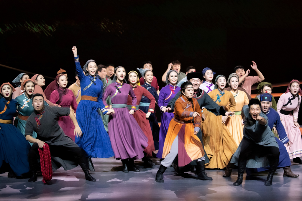 近年来,随着非物质文化遗产保护的不断深入,兴安盟的艺术家们发现这首红色经典与他们家乡民歌《莫丽玛》有着如此紧密的因缘关系,感到有种无上的亲近感和光荣感,产生了新的艺术冲动,于是循着歌词所展现的情感线深入挖掘,重新回望跟着中国共产党从黑暗走向光明,迎来“草原上升起不落的太阳”的历史征程,历经5年,不断摸索,反复打磨,终于打造出了今天呈现在舞台上的这部精品力作、2024年复排版音乐剧《草原上升起不落的太阳》。