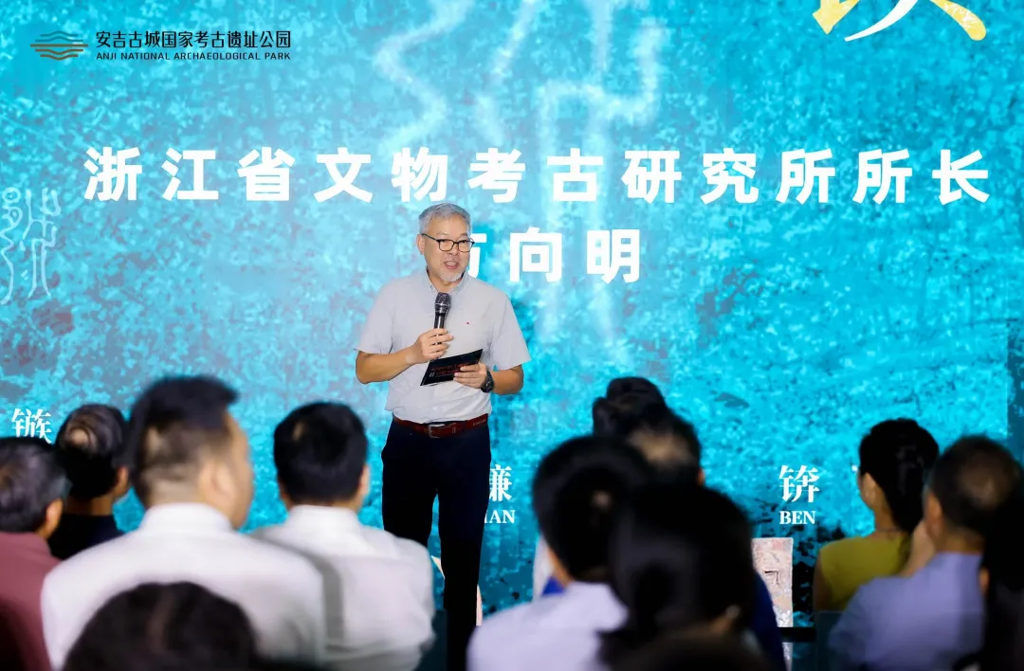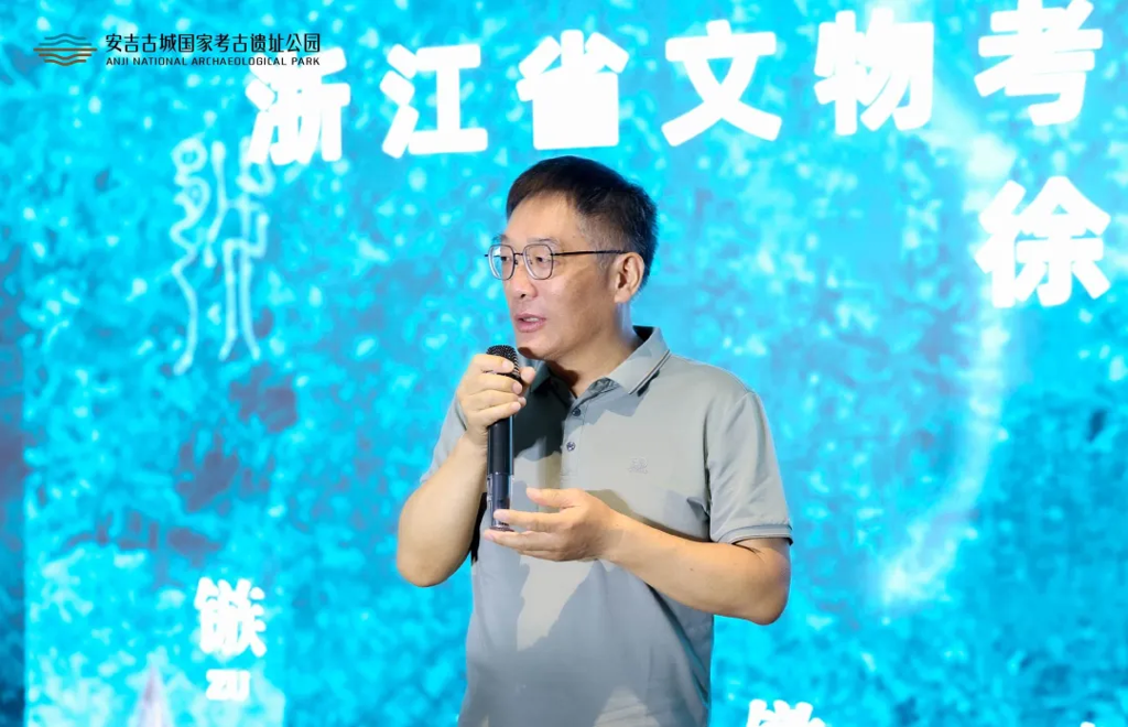 浙江省文物考古研究所所长方向明在致辞中介绍了近些年安吉考古工作的进步和成果,同时进一步希望各位同仁在未来的考古工作中,注重推进交流合作,持续做好越国考古工作。