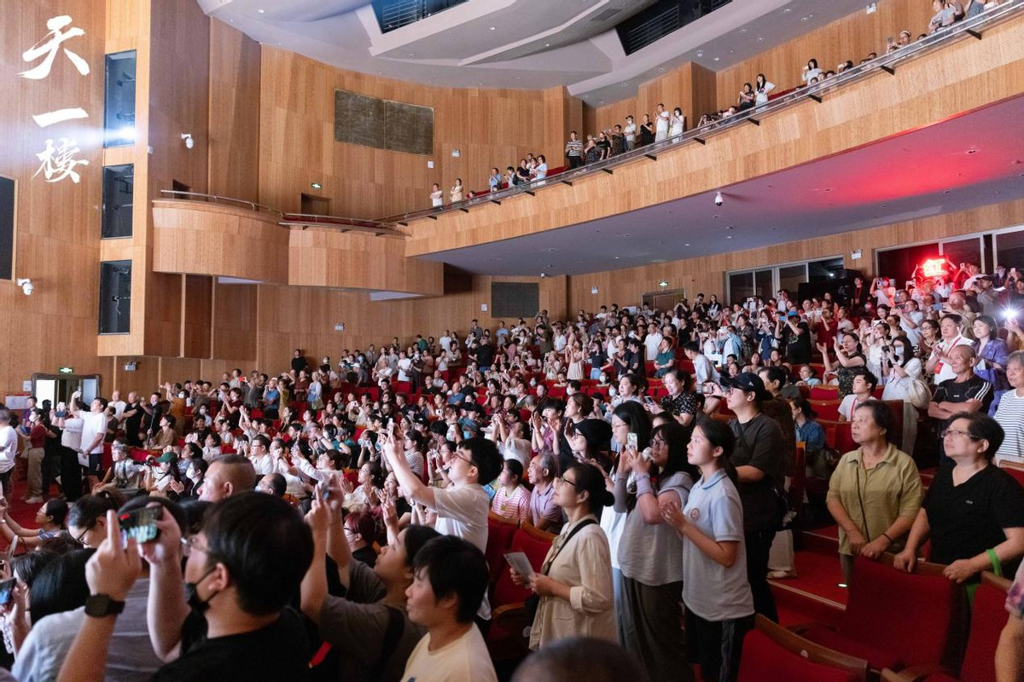由宁波市小百花越剧团精心打造的越剧《天一楼》8月18日19:30在宁波天然舞台震撼上演,亮相第十六届浙江省戏剧大赛。演出当晚座无虚席,许多年轻观众早早来到现场,手持戏票在剧场大厅内与演员立牌合影。不少忠实戏迷为剧目和演员制作了手幅、扇子等周边在现场分发。现场高潮迭起,观众热情高涨。谢幕时分,全场报以最热烈的掌声与欢呼,久久不愿离去。现场满座的火爆与青年观众的热情参与,更让这场演出成为传统戏曲与当代审美的生动碰撞。