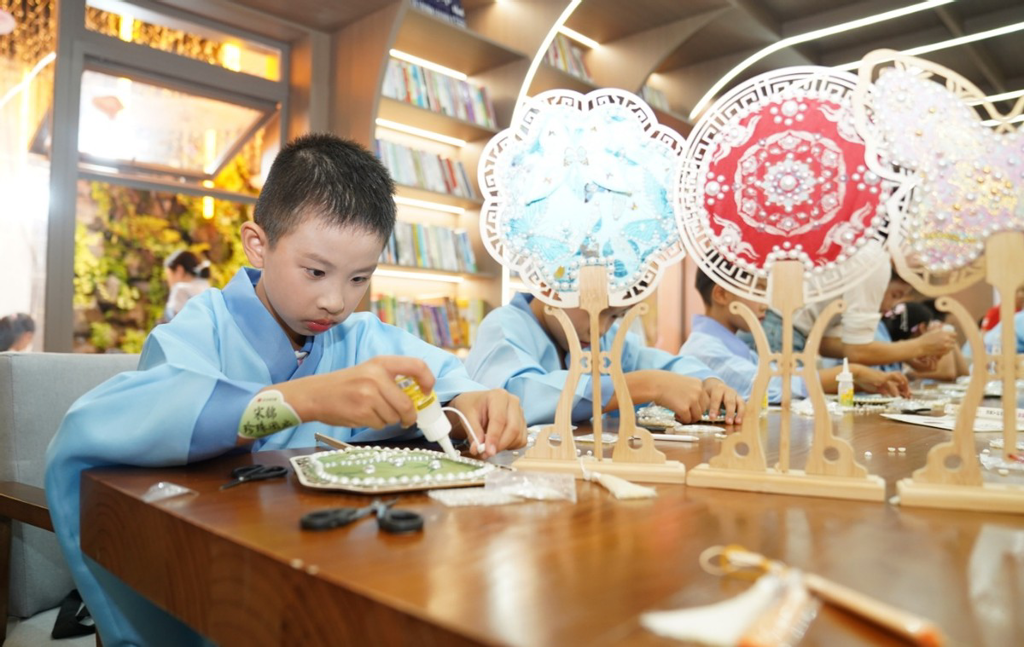 非遗手工体验环节更是人气高涨,参与者们踊跃尝试宋锦珍珠团扇、苗银竹编冰箱贴、中药香氛画、手工香牌、新中式手串等特色项目。在一针一线的细腻、一雕一琢的专注中,大家触摸着非遗技艺的温度,感受着传统工艺的巧夺天工。这些承载着文化记忆的手作,不仅是美的呈现,更是安吉将文化资源转化为体验项目的生动实践,为旅游增添了别样的趣味与深度。