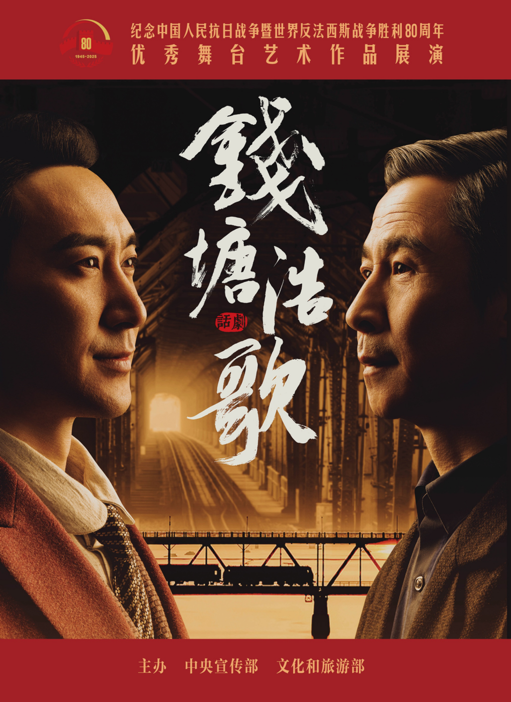 该剧讲述的是茅以升亲手将自己设计建造的钱塘江大桥炸毁以阻止日军侵华的历史事件。剧目聚焦老一辈知识分子在面对国仇家恨的重要历史时刻所彰显的不屈风骨,让一个个具体人物的悲欢离合、一批工程专家的家国情怀呈现在舞台,与“抗战胜利80周年”这一重大主题深度契合。