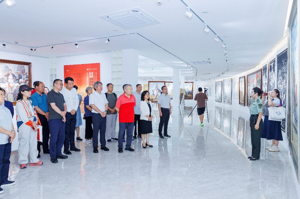 赵锁平致辞表示,展览契合抗战胜利 80 周年主题,不仅是一场视觉艺术的文化大餐,更是一次思想政治上的精神洗礼!其作为参展者,带来了18幅相关作品,好的作品不仅要创作出来,还要通过展览展示出来,传承红色基因,凝聚思想共识。