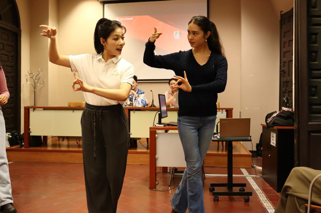 而在西班牙著名学府格拉纳达大学举办的越剧艺术讲座,则让文化交流走向了更深层。讲座上,剧团不仅讲解了戏曲的行当功法,展示了越剧的服饰妆容、身段唱腔,还现场教学简单的水袖动作及生旦身段。