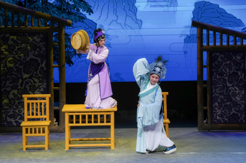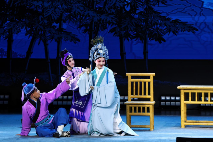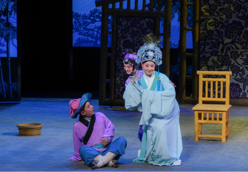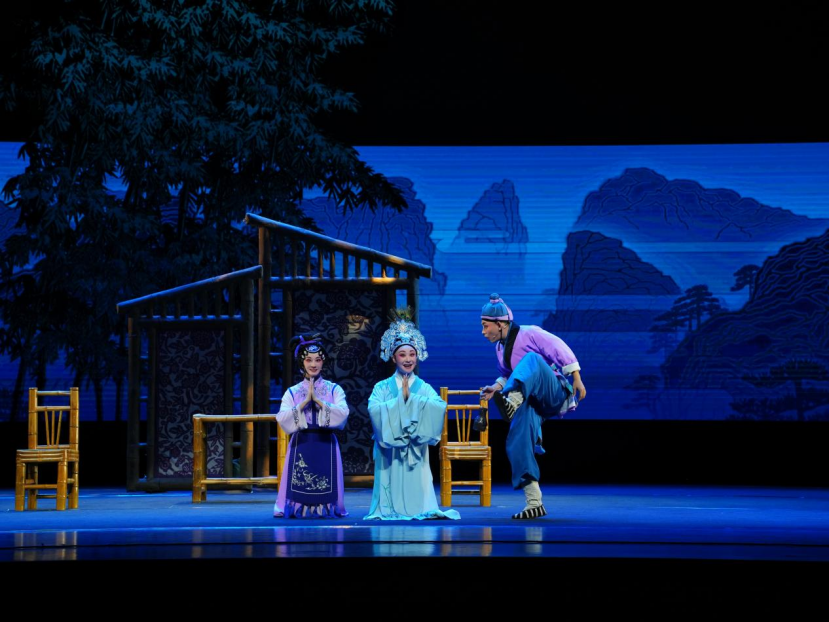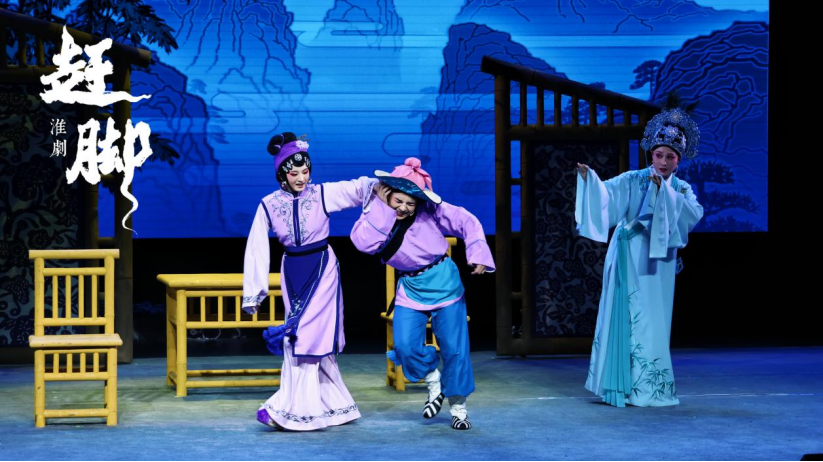 在艺术呈现上,《赶脚》坚守戏曲本质又注入时代活力。编剧对老版本进行解拆提纯,重构“追夫、寻夫、陪夫”主线,梳理出“遇险被救”“结拜戏夫”等环环相扣的情节,让故事既在意料之外又在情理之中。导演运用毯子功、水袖功及翻、打、滚、踢等传统戏曲程式,将救人场景与情感冲突具象化,使紧张剧情与喜剧氛围巧妙融合。更令人瞩目的是,3位平均年龄仅24岁的青年演员,以扎实的功底赋予角色鲜活生命力,让古老淮剧焕发现代气息,为观众带来兼具传统韵味与视听冲击的艺术盛宴。