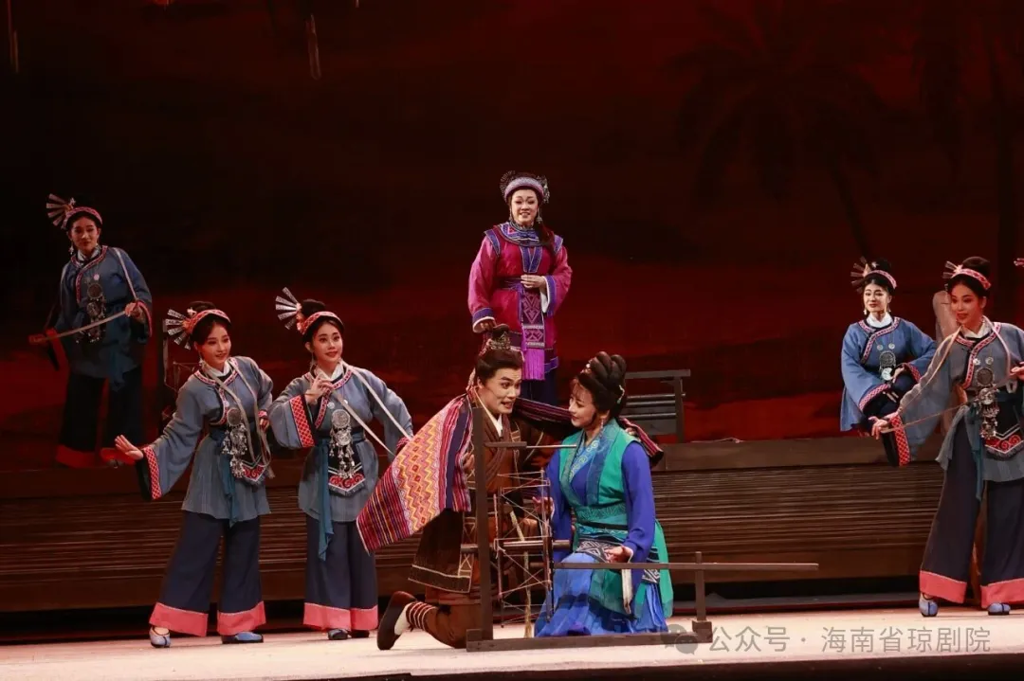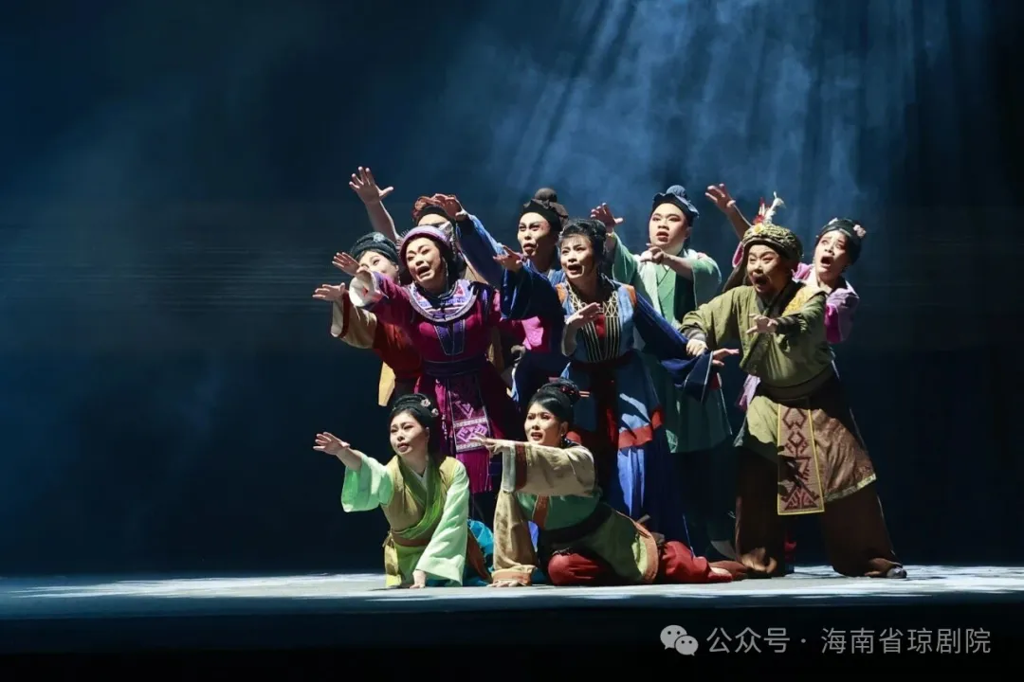 音乐设计上,该剧在保留琼剧传统韵味的同时,融入了现代音乐元素。例如在《别亲》一场中,音乐并未沿用传统的悲切曲牌,而是融入了黎族民歌的轻盈动机,巧妙地表现了"悲欣交集"的情感复杂性。这种传统与现代的融合,既尊重了戏曲的本体特征,又适应了当代观众的审美需求。
