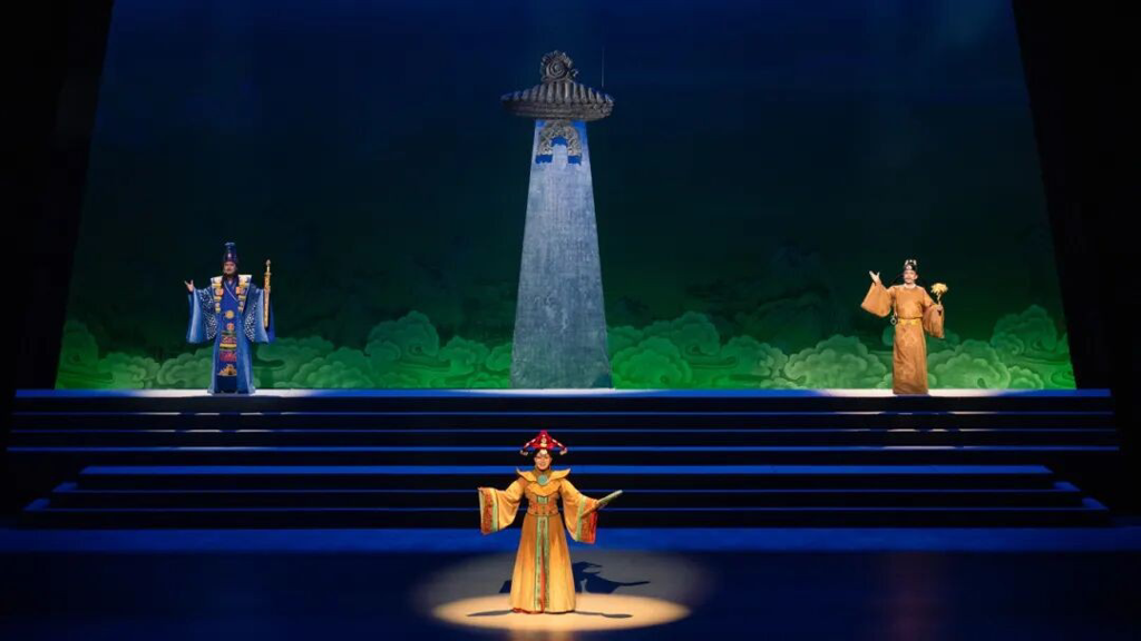 作为本届艺术节全国55部入选剧目中唯一的少数民族戏曲作品,同时,也是全国30个少数民族自治州唯一入选的剧目,《金城公主》从创排之初,便肩负着传承非物质文化遗产、铸牢中华民族共同体意识的时代使命。该剧获国家艺术基金2022年度舞台艺术创作立项资助,由青海省藏剧团历时三年精心打磨,以唐蕃和亲的宏大历史为背景,通过“乱世童年”“西行入蕃”“力促会盟”“传播文明”等关键情节,细腻塑造出金城公主胸怀家国、坚韧睿智的女性形象,完整呈现了她以智慧化解纷争、以慈悲凝聚人心,推动汉藏文明交融的壮阔人生。