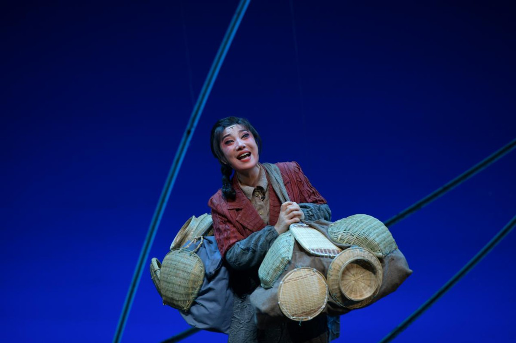 随着板胡尖锐清脆的旋律响起,舞台幕布缓缓拉开。当主人公李水河在绝境中高唱苦音腔,那深沉哀婉却暗含力量的曲调瞬间抓住全场观众的心。当剧情推进到主人公带领乡亲们创办扶贫工厂的高潮段落,欢音腔的明朗节奏随之响起,明快旋律与演员刚健有力的表演形成强烈感染力,现场随即爆发雷鸣般的掌声。“这段太提气了!从低谷爬起来带领大家干事业的劲头,比任何台词都打动人,鼓掌鼓得我手都红了。”一位中年观众激动地说道。
