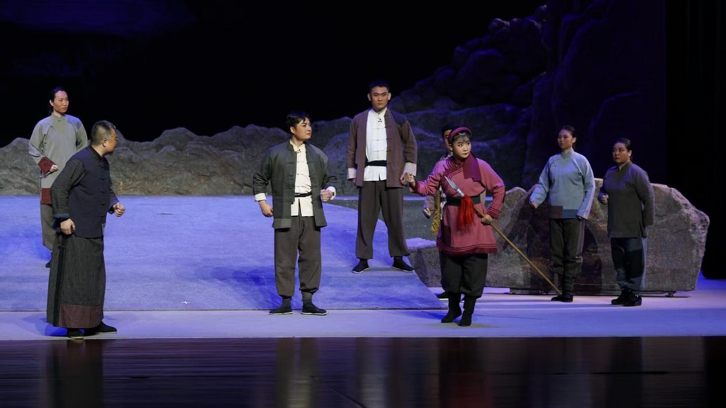 现代评剧《路北游击队》是以评剧为载体诠释革命记忆的一次生动的艺术实践,更是宁城县乌兰牧骑延续六十载红色创作谱系的全新探索。作为草原上的“红色文艺轻骑兵”,宁城县乌兰牧骑坚持传统文化创造性转化,创新性发展。该剧中,红色精神跨越了地域与民族的边界,中华民族共同体意识也在情感共鸣中愈发深厚,为各民族像石榴籽一样紧紧抱在一起,提供了坚实的精神支撑。唱腔既坚守评剧“以唱传情”的核心特质,又针对性地进行“轻骑兵式”简化与适配:唱腔板式不求繁复多变,唯求情感鲜明真挚;唱词语言摒弃华丽雕琢,力求通俗晓畅、贴近生活。既保留评剧精髓,又契合乌兰牧骑“喜闻乐见、接地气”的演出特点,让红色情感借由唱腔直入人心。
