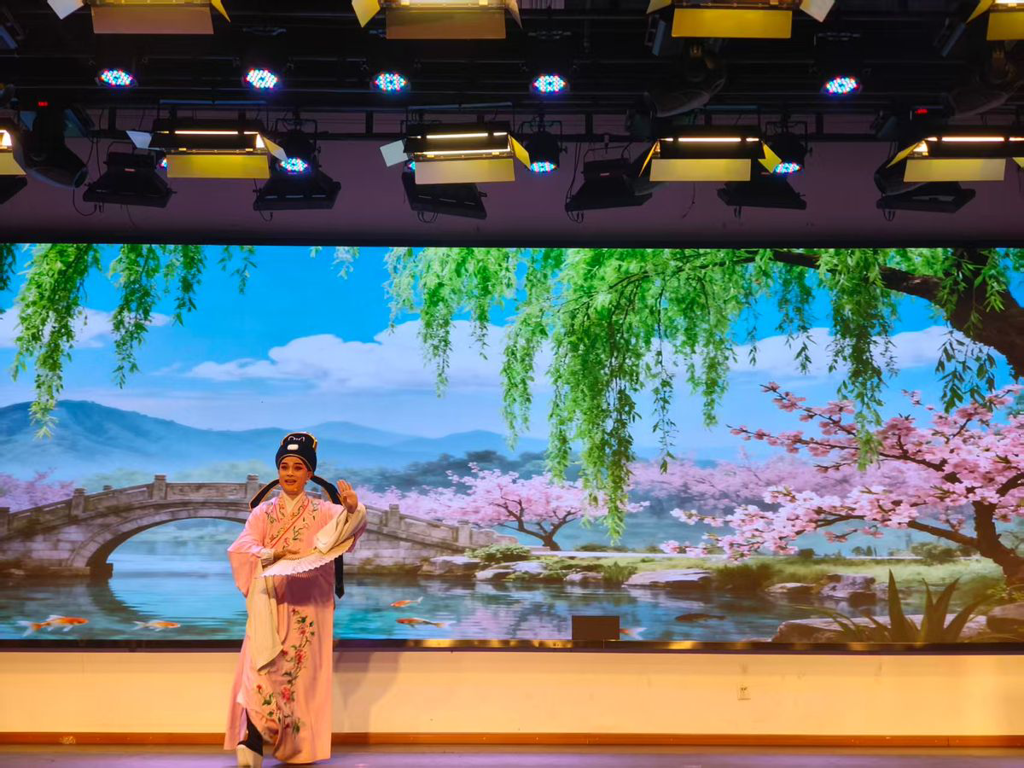 2025年冬,首场演出安排在安徽中医药大学的礼堂内,一曲《欢天喜地闹花灯》瞬间点燃现场氛围。台下座无虚席,年轻学子们的目光紧追着台上流转的水袖与摇曳的灯影。从“少年相伴无烦恼”的清新对唱,到“谁料皇榜中状元”的经典旋律,再到豫剧唱段“谁说女子不如男”激起的热烈喝彩——传统戏曲不再只是课本里的名词,而成了可听、可感、可跟着哼唱的生命律动。演职员们惊喜地发现:“他们不只是‘看戏’,更在每一处转折跟着屏息,每一次亮嗓报以掌声。”这一幕,印证了黄梅戏在校园中扎根的土壤:经典从未老去,只待一个与青春相遇的舞台。