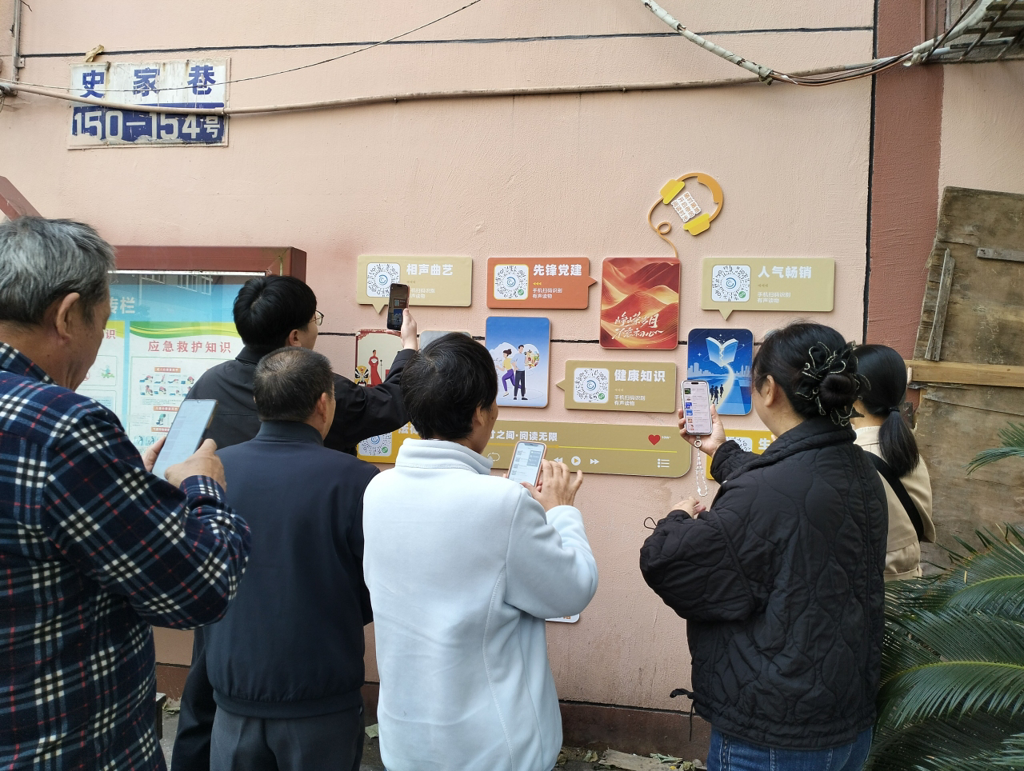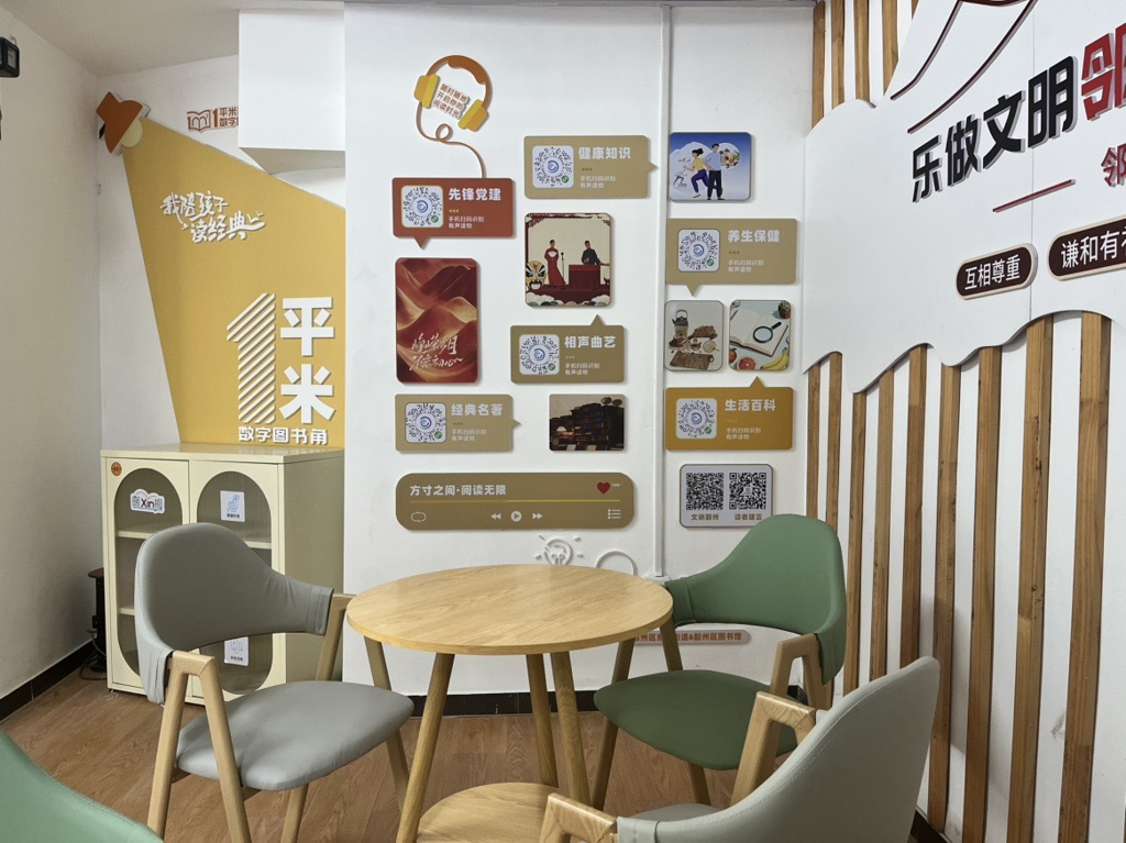 据了解,这是鄞州区图书馆首次探索与镇街合作,输送优质数字图书资源直达居民群众“家门口”。10个点位均设在人流密集、环境适宜的区域,包含小区凉亭、长廊、社区活动室等公共空间。“一平米数字图书角”内容涵盖先锋党建、国学经典、法律普及、童话名著等多元主题,旨在为居民们提供个性化听书便利。“我家小孩特别喜欢听童话名著,有时我陪他一起听,在社区图书角扫个码就能听,很方便!”泰和社区居民陈叶风说。