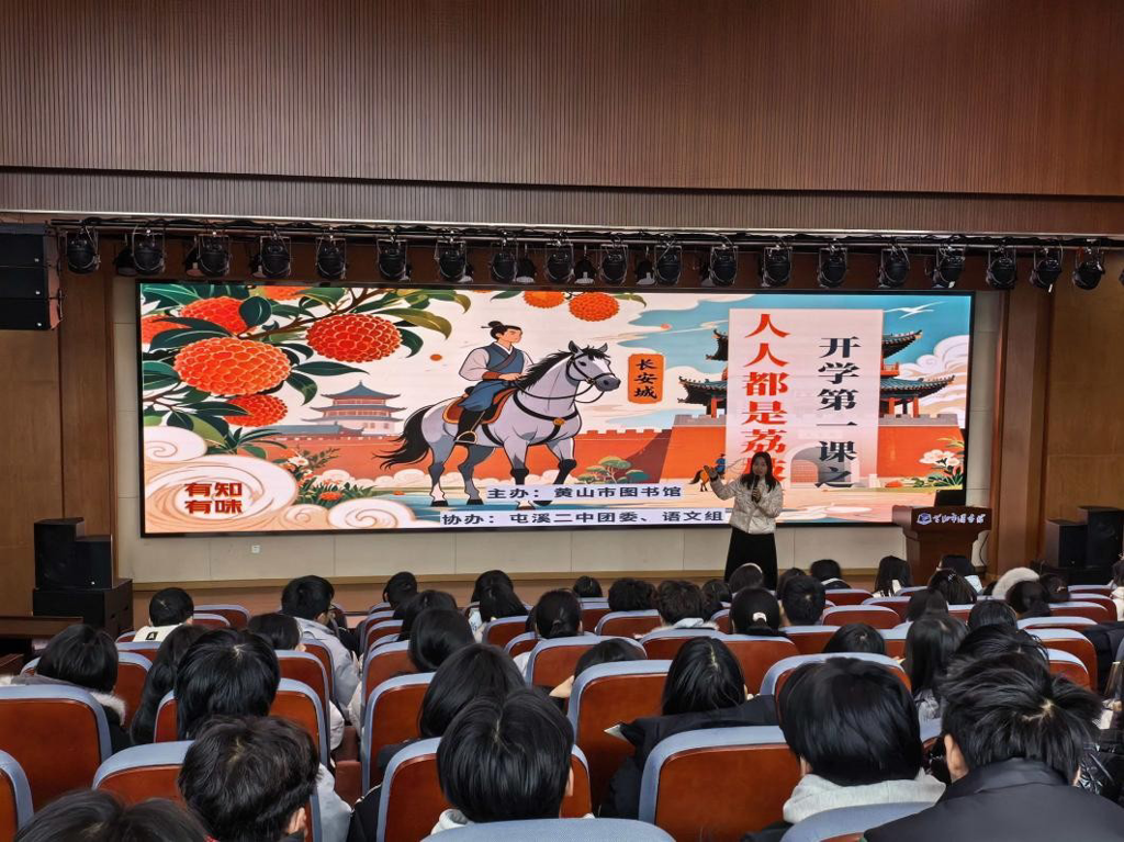 为丰富校园文化生活,引导学子汲取奋进力量、开启新学期成长新征程,黄山市图书馆依托“有知有味”文化品牌,以热门作品《长安的荔枝》为载体,于3月4日下午在馆内报告厅为屯溪二中学子呈现了一堂别开生面的“开学第一课”缕缕书香融入励志精神,如春风化雨般浸润青少年心田。
