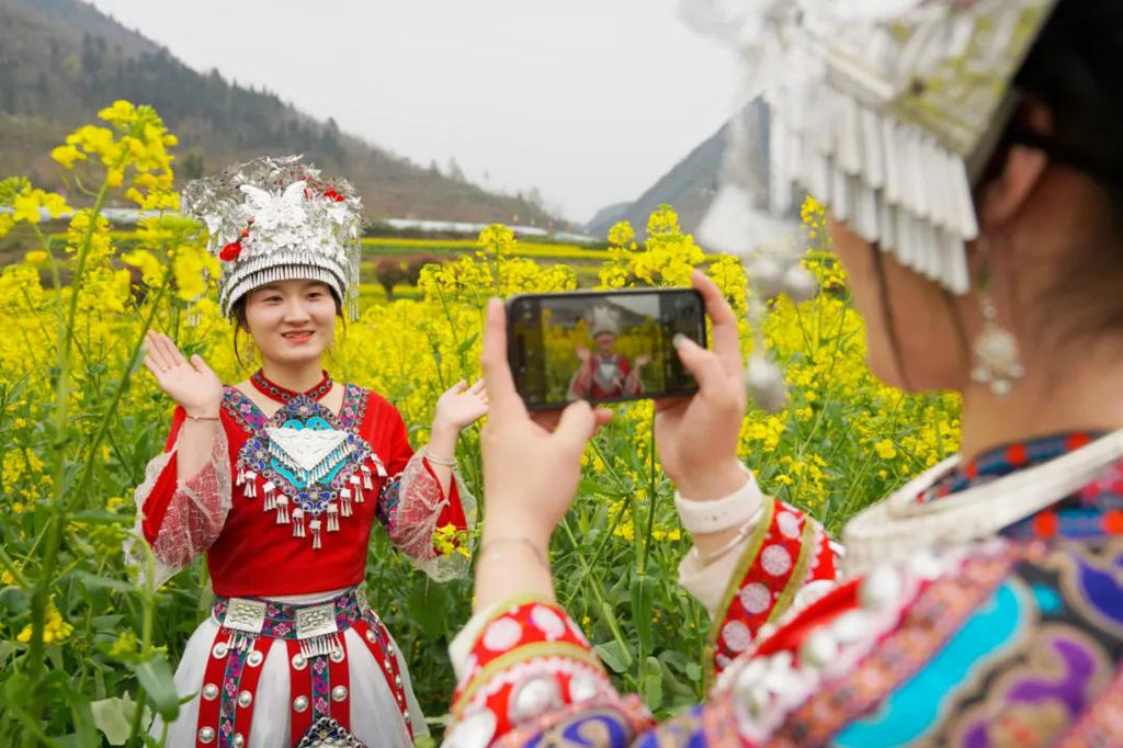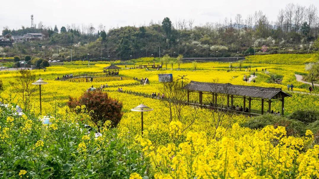 金黄“花海”与古寨相映成趣