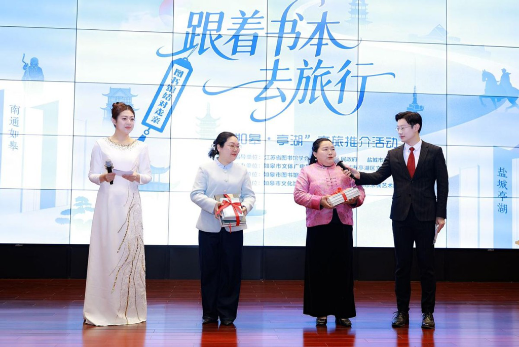 推介环节,亭湖文旅推荐官唐静深度解读作家徐向林、朱义刚新作《花开七百年:便仓枯枝牡丹》,讲述亭湖生态文化密码;如皋市图书馆张洁推介城市形象口袋书《如皋如歌》,展现如皋诗意风情。