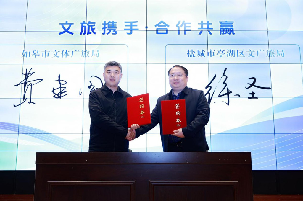 活动中,盐城市亭湖区文化广电和旅游局党组书记、局长徐圣与如皋市文体广电和旅游局局长费建国签订研学旅游合作协议,正式成立亭湖·如皋研学联盟,为两地文旅、研学深度合作奠定坚实基础。活动最后,如皋市文体广电和旅游局非遗木偶表演《雉水偶韵》精湛技艺将现场氛围推向高潮。