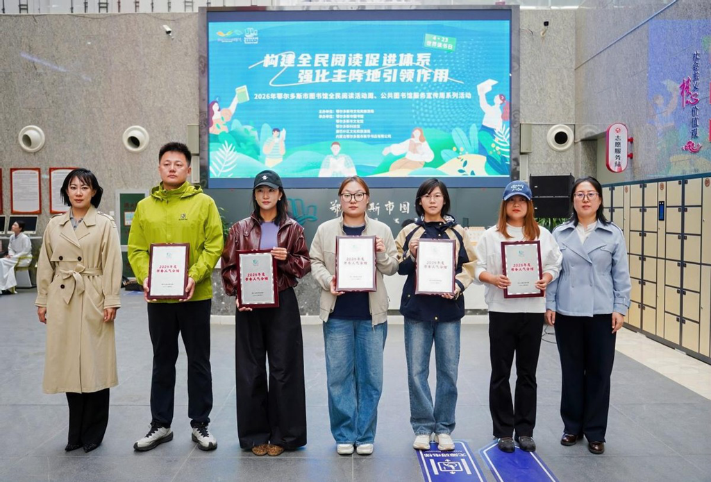 春风漫卷书香,暖城阅享时光。4月19日,在第31个“4·23世界读书日”暨首个全民阅读活动周来临之际,由鄂尔多斯市文化和旅游局主办,市图书馆、市文化馆、市科技创新馆、康巴什区文旅局及市新华书店承办的“构建全民阅读促进体系,强化主阵地引领作用”——2026年鄂尔多斯市图书馆全民阅读活动周、公共图书馆服务宣传周系列活动正式启幕。本次活动为期12天,以市图书馆为主阵地,通过集中展示、互动体验、表彰颁奖、配套联动等多元形式,吸引了众多市民读者积极参与。