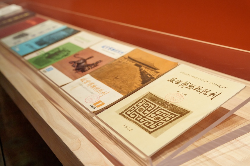 此次举办的“汇流澄鉴:故宫出版社建社四十周年展”,将故宫出版社40年来的发展历程以“创——成立紫禁城出版社”“塑——打造故宫出版品牌”“博——汇聚院藏文物精品”“谋——引领文博图书方向”“新——数字融合文化创意”五个单元徐徐展开。展览首次采用以“图书+文物”的展览形式,展厅中,既有上千本精品图书垒起的“故宫书山”和“紫禁书城”,书山壮阔,书城巍峨,还有22件珍贵文物配展,其中不乏宋代五大名窑的精品瓷器、清乾隆碧玉交龙钮“古稀天子之宝”等精美文物。