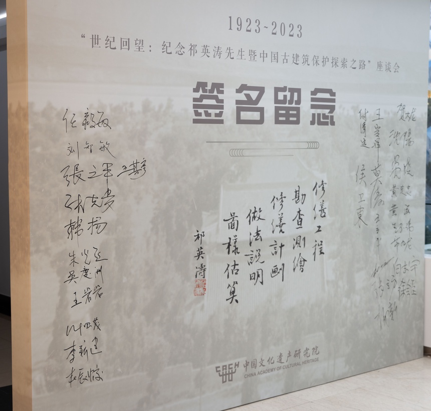 为配合此次座谈会,中国文化遗产研究院特举办“世纪回望:纪念祁英涛先生暨中国古建筑保护探索之路”专题展览,以追念前贤,回顾和缅怀祁英涛的生平事迹,继承和弘扬以祁英涛为代表的老一辈古建人潜精研思、术业精专的学者精神,热爱祖国、服务人民的报国情怀,治学严谨、勇于创新的科学态度,追求真理、实事求是的高尚情操和扶植青年的育人风范,总结中国文物保护的历史经验,面向新时代,展望新征程。