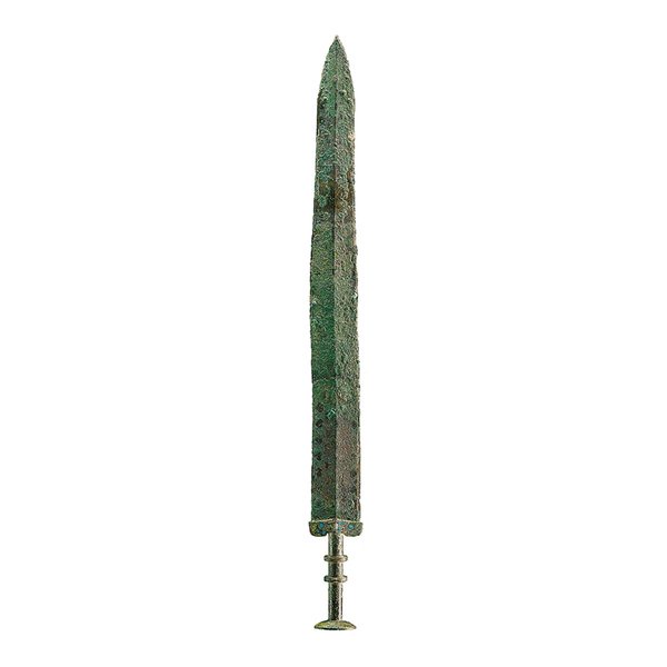 春秋时期,地处江浙的吴、越开始发展,雄霸了东南。吴国和越国的地势都不适合车战,因此吴越对剑情有独钟,铸剑的水平也十分高超。在中国古代十八般兵器中,剑被称为“百兵之皇”,剑的家族中年纪最长的,无疑是青铜剑。国力强大的吴国,其锋利的青铜剑远近闻名。