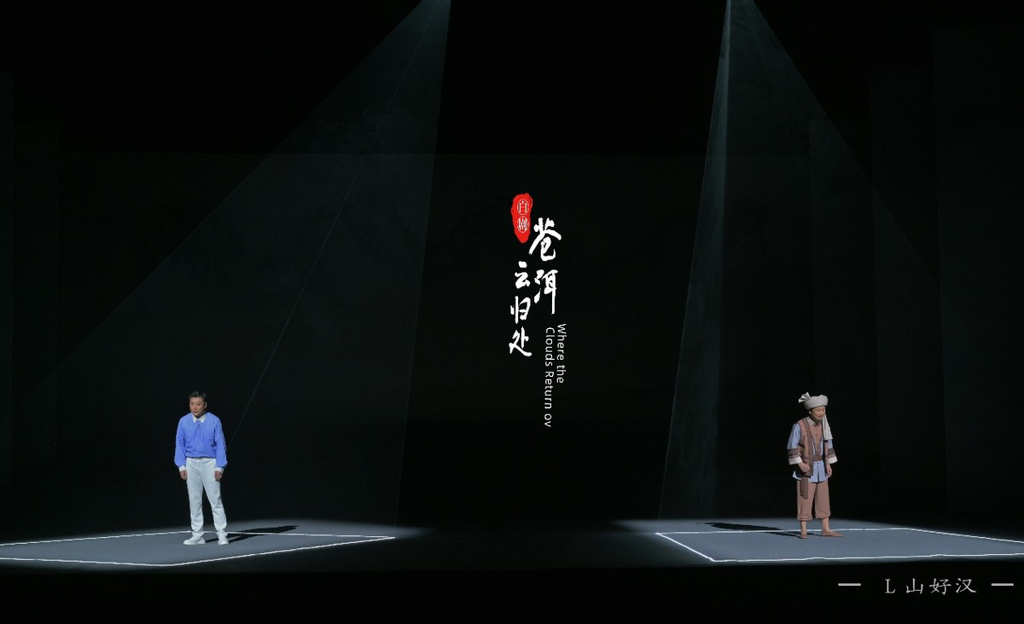 现代文化与科技手段的融入,使《苍洱云归处》更具现代性。在作品选材上,编剧聚焦 “乡村振兴”“文旅融合”“直播电商”“AR 技术” 等当代热点话题,打破白剧对传统历史题材的演出束缚,直面社会中当代乡村发展过程性中所遇到的困境,从而创新性的探索出以少数民族戏剧讲述当代故事的先例。剧目中的“country bumpkin(乡巴佬)”等英语词汇的使用,将“传统”与“当代”的选题放置于眼前,舞台上出现的无人机、平衡车、AR 眼镜、直播屏幕等现代道具,不仅丰富了舞台视觉效果,更是推动剧情发展的关键所在。