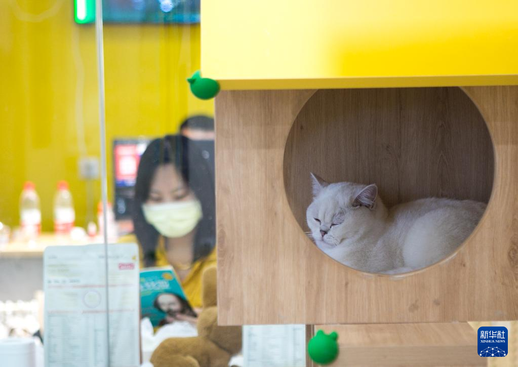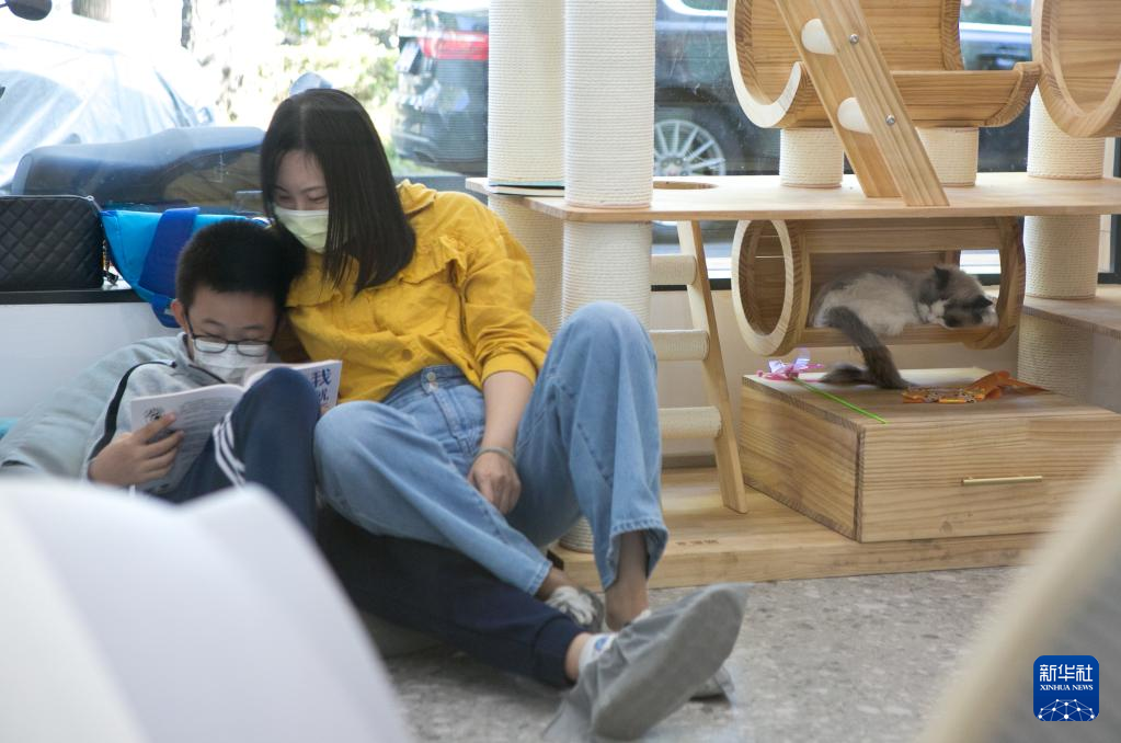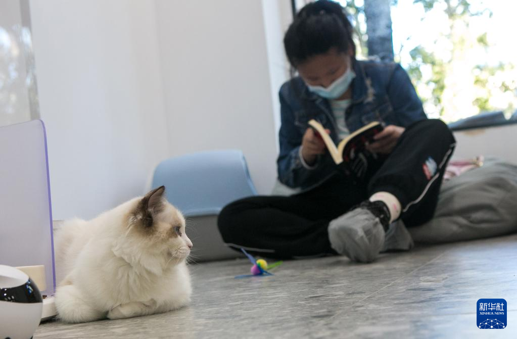 国庆假期,一些读者带着孩子来到位于北京市朝阳区的新华书店宠物主题书店,与猫咪“作伴”阅读。书店设置了读者与猫咪互动的阅读空间,主打售卖宠物主题的图书及周边文创产品。