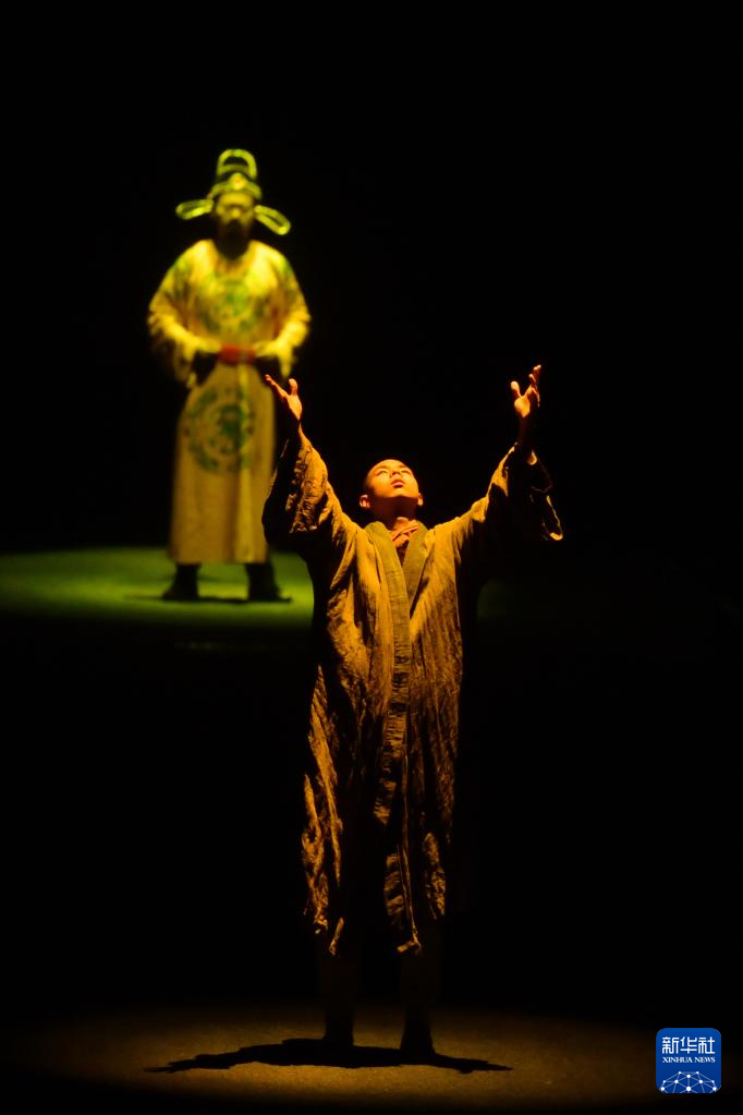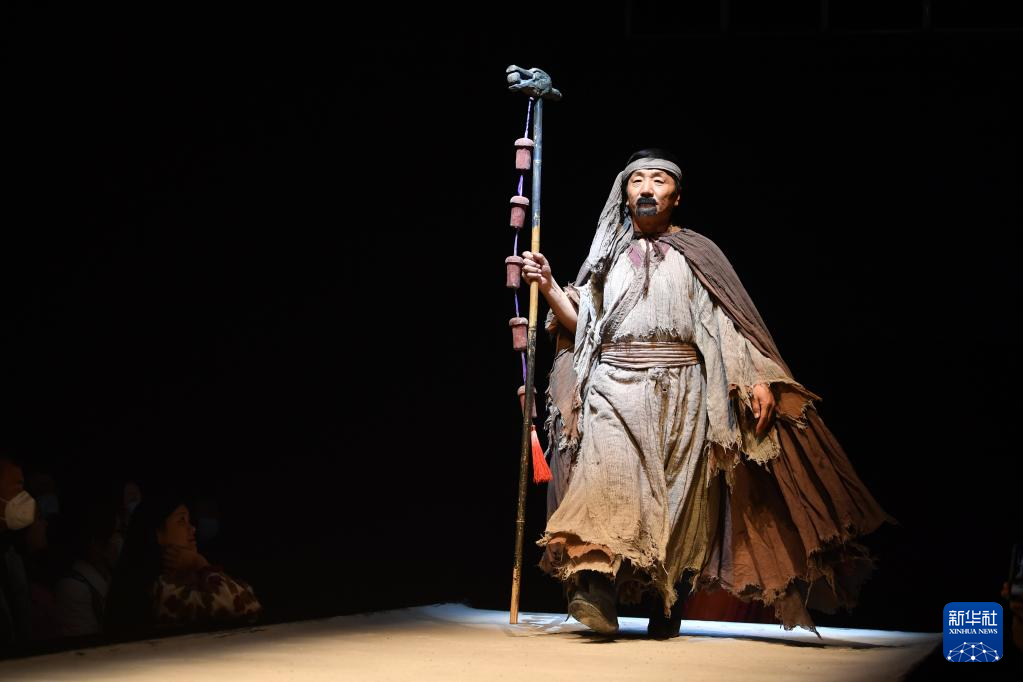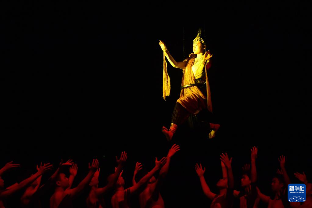 3月14日晚,演员在大型室内情景体验剧《又见敦煌》中表演。