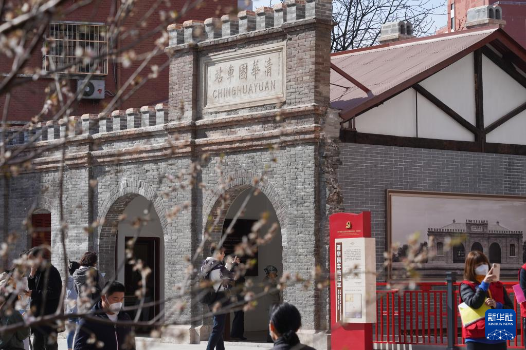 3月25日,修缮后的清华园车站旧址迎来参观者。