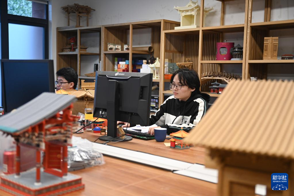 11月4日,一家入驻大运河1986文创园的企业员工在设计中国古建筑积木产品。
