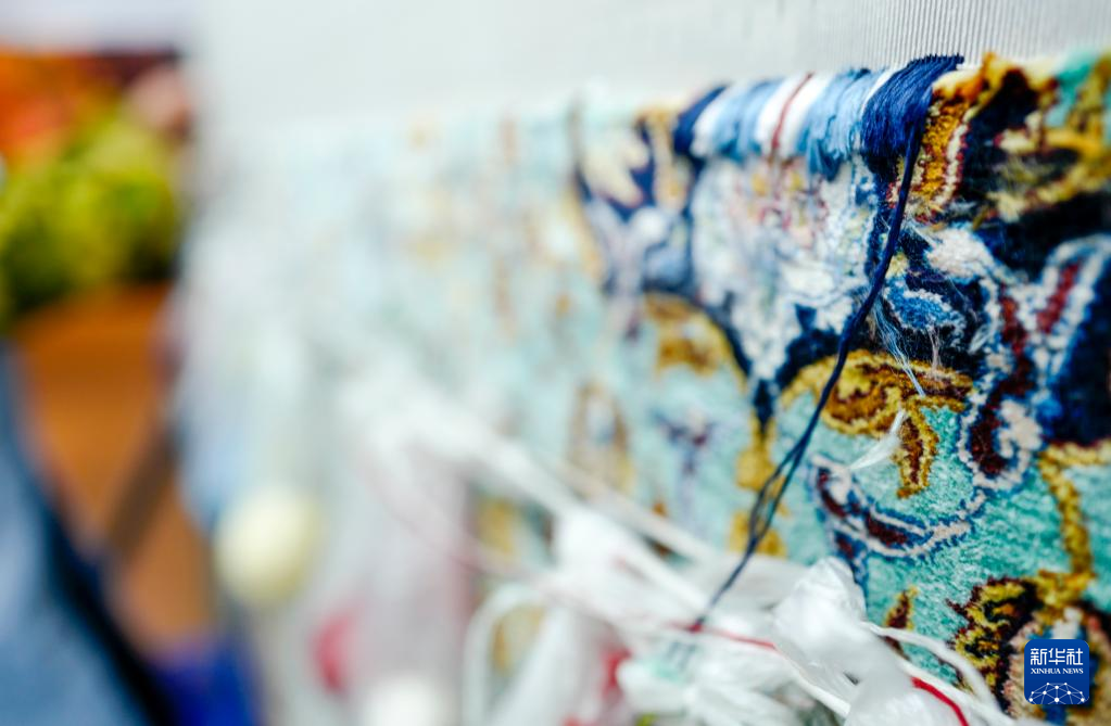 3月21日,游客在银河丝坊观赏出口海外的丝毯产品。