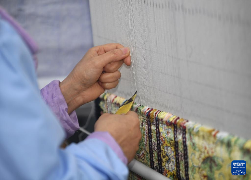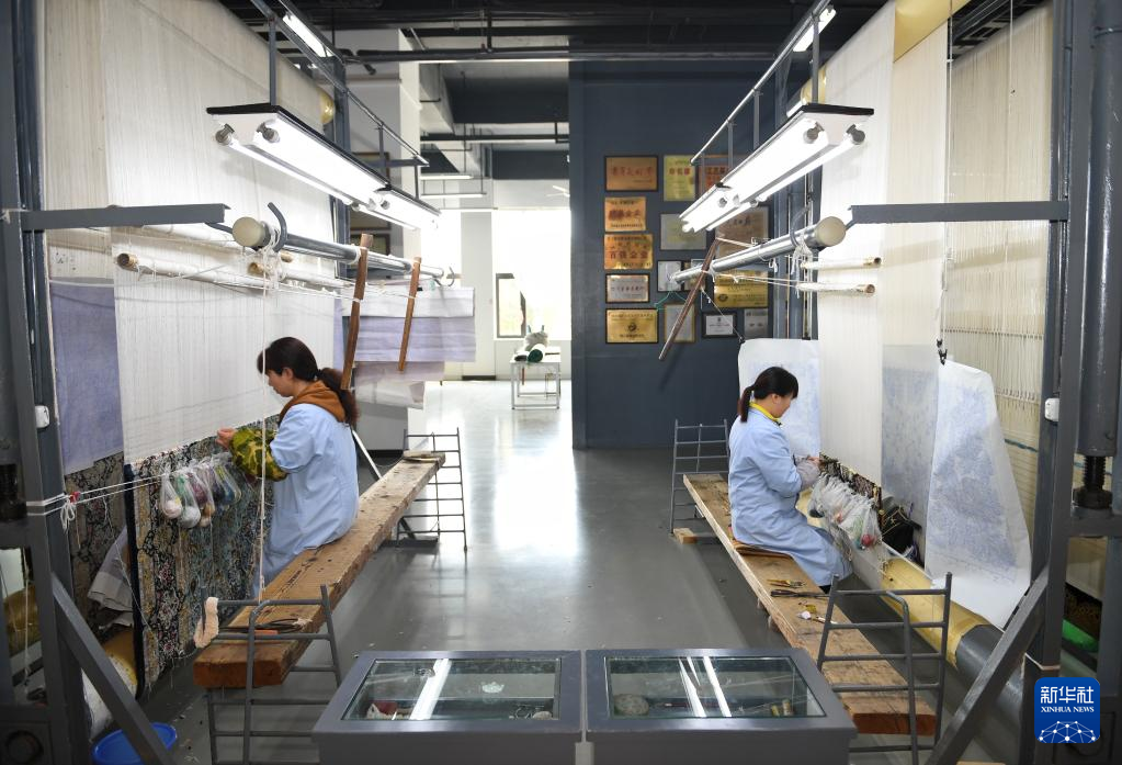 3月21日,四川阆中一家企业工人在编织丝毯。