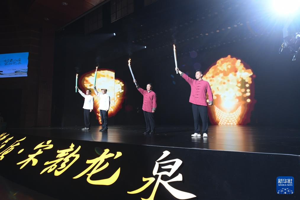 10月30日,龙泉的青瓷和宝剑制作技艺传承人在开幕式上手举薪火。