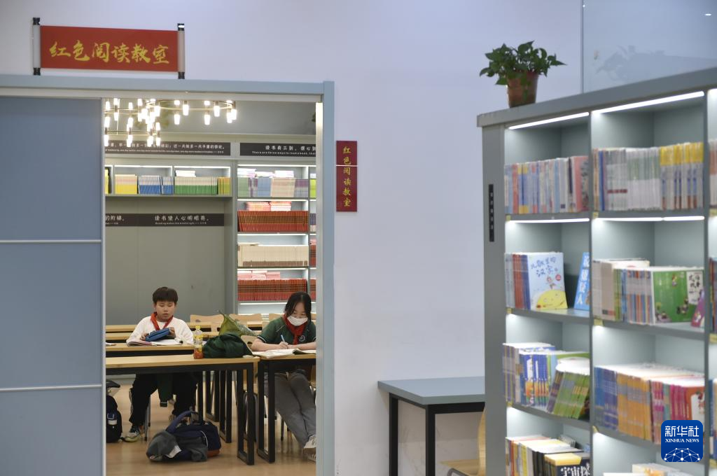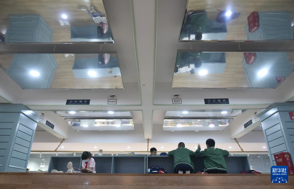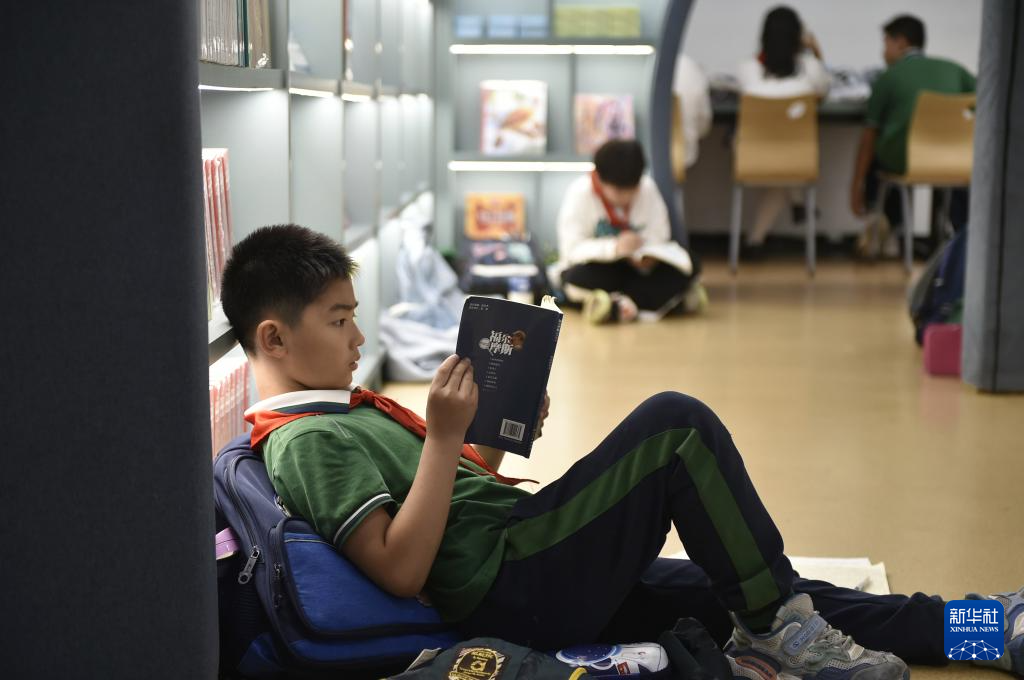 10月18日,小学生在郑州市纬五路第一小学校园阅读中心内阅读。