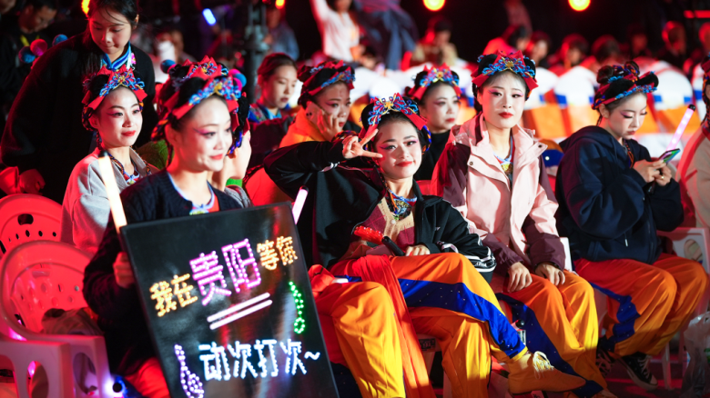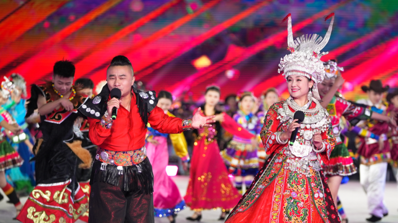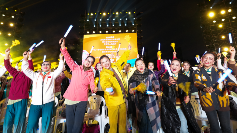 当晚表演以歌舞串烧节目《舞起来!》拉开帷幕,嘉宾歌手与山西大同、天津滨海新区、河南郑州、山东威海、四川德阳、湖南郴州六大片区的广场舞团队共同带来《最炫民族风》《奢香夫人》《对歌对到日落坡》等歌舞串烧,瞬间点燃观众热情。活动现场充满地域特色和民族风格,彰显了广场舞文化百花齐放、多元融合之美。来自贵州的《阿西里西》《苗描舞》、湖南的《竹梆声声》、海南的《椰壳哒哒幸福来》、北京的《振兴乡村舞起来》、辽宁的《山美水美东北美》……一支支展演队伍带来了充满区域特色的音乐舞蹈,用热情的舞姿和灿烂的笑脸掀起活动高潮。活动邀请青年歌手乌兰图雅、青年舞蹈家李德戈景、歌唱家张英席等作为嘉宾,与舞队共唱共舞共欢乐,让广场舞与其他艺术形式创新跨界交融,艺术性、观赏性和专业性进一步提升。当晚活动设置贵阳主会场与花果园分会场、贵州“村BA”分会场、海外分会场等,各会场之间穿插表演、连线互动,气氛欢快热烈、场面别开生面。