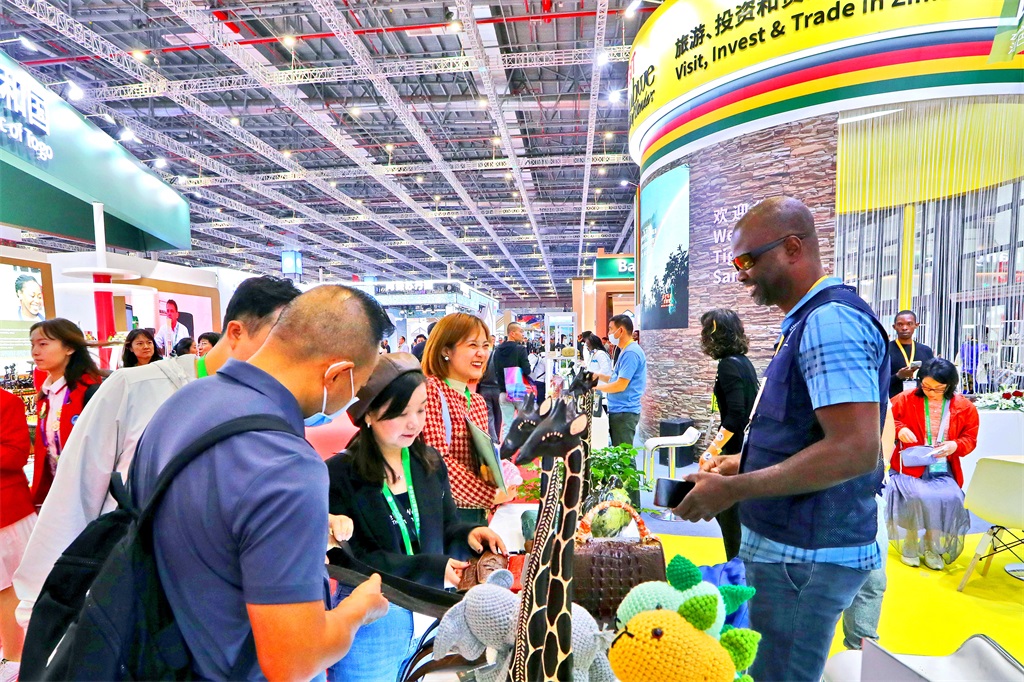 在俄罗斯展区,“鲸鱼和北方的极光”“冬季贝加尔湖:西伯利亚中心”“达吉斯坦的丝绸之路”等一份份精美的旅游宣传册,向中国游客展示异域风情;哈萨克斯坦展区以“一带一路”倡议10周年为主题,屋顶呈现波浪形状,寓意“发展道路”,从农业综合体、旅游、物流、投资、出口、创新等方面展现发展潜力;在津巴布韦展区,“旅游、投资和贸易,就在津巴布韦”的字样引人注目,新鲜的咖啡豆产品散发着氤氲香气;另一边的塞尔维亚展区,几位来自当地的专业歌手唱起塞尔维亚传统歌曲,表达团聚之情,一曲终了,掌声阵阵……