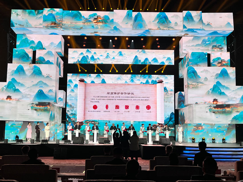 各方签署石窟保护合作协议。乐山市委宣传部供图