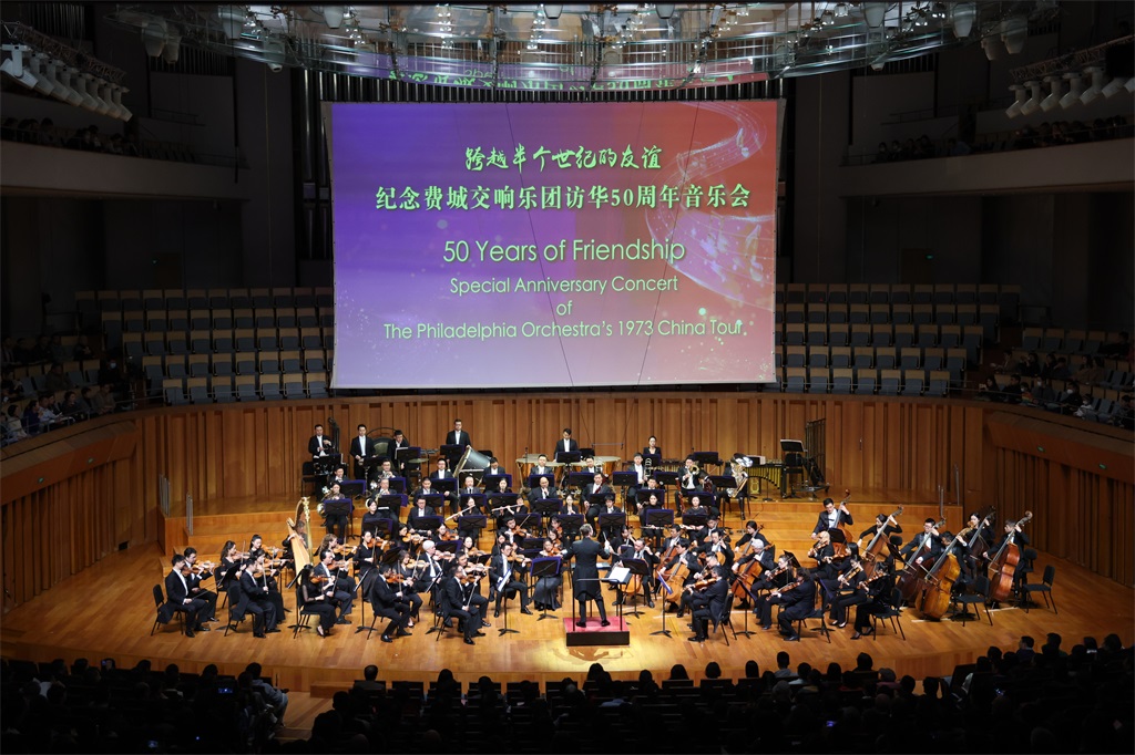 11月10日,由中国文化和旅游部主办,中国对外文化交流协会、中国人民对外友好协会、美国国务院支持的“跨越半个世纪的友谊”——纪念费城交响乐团访华50周年音乐会在国家大剧院举办。