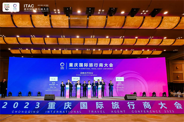 会上,重庆市文化和旅游发展委员会与海南航空签订战略合作协议,双方将秉承优势互补、互利共赢理念,共同探索“航空+旅游”目的地全球营销推广模式,依托海航在全球的22个境外办事处,挂牌重庆文旅之窗,常态化宣传展示重庆文旅形象。重庆市文化和旅游发展委员会、市商务委员会与携程集团签订战略合作框架协议,三方将在业态创新、产品供给、旅游经济、国际化发展、大数据赋能、乡村振兴等方面开展合作,探索“演艺+旅游”文旅融合新业态模式,聚力打造面向全球的国际旅游集散中心。