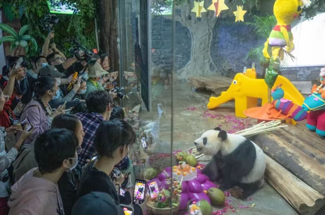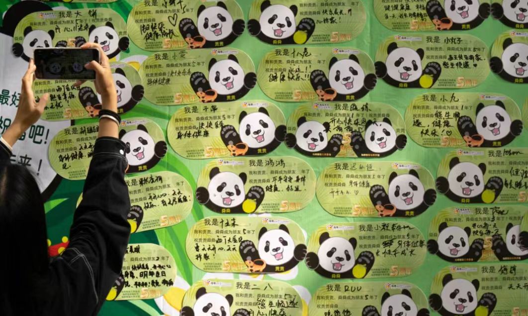 11月25日,海南热带野生动植物园内(以下简称“海野”)热闹非凡。当日,海野为熊猫兄弟贡贡、舜舜举行登岛5周年系列庆祝活动,邀请市民游客共同为熊猫兄弟送上祝福。