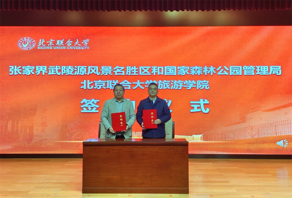11月28日,湖南张家界武陵源景区走进北京联合大学,举办校地合作大会,开展“张家界地貌”科普研学旅行宣传推介及“吴冠中”张家界游记散文征文颁奖典礼活动。活动现场,校地双方共同为“吴冠中”张家界游记散文征文获奖作者代表颁奖,并签署合作协议。