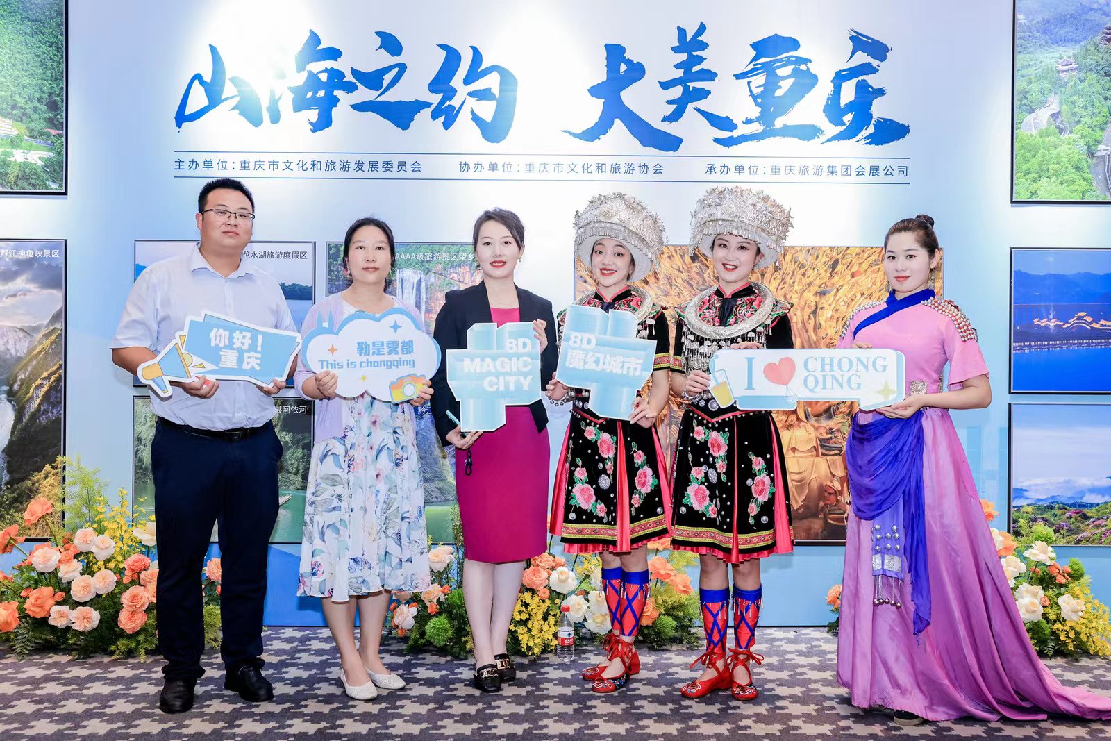 会上,重庆文旅推介人分别向与会嘉宾介绍了重庆文旅整体情况,以及重庆特色文化旅游资源和线路产品,展示了统景温泉、九黎城、大足石刻、四面山等重庆自然景观和人文风情,并诚邀广大海南游客来渝旅游休闲。