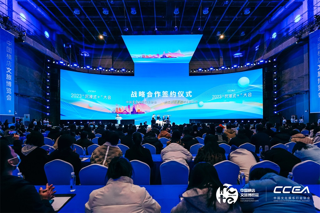 12月1日,由中国文化娱乐行业协会(以下简称“中娱协”)主办,横店集团、鸿威会展集团承办的2023“沉浸式+”大会在浙江金华东阳市横店影视城举行。